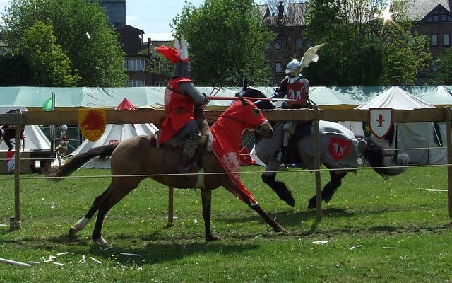 In the film A Knight's Tale, Joscelin asks Adhemar if "men are killed in the joust". He replies that accidents do happen. Fair enough! On 22 February 1216 Geoffrey of Mandeville died of a wound he had received "when, as is the custom of the Francs, horsemen attacked each other in turns with lances or poles while riding": dum, more Francorum, eques cum h…