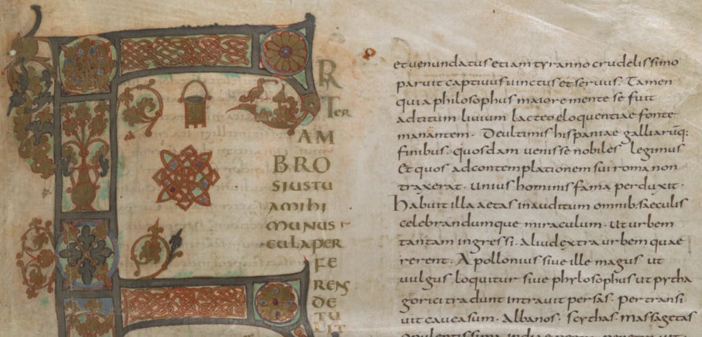 Easy to read by everybody. This excerpt from the Moutier-Grandval Bible displays the quality of 'Caroline minuscule' script, the standardised handwriting style associated with the emperor Charlemagne. Though dating back to the 9th century, this script is far easy to read today than many types of writing which followed it, including Gothic.