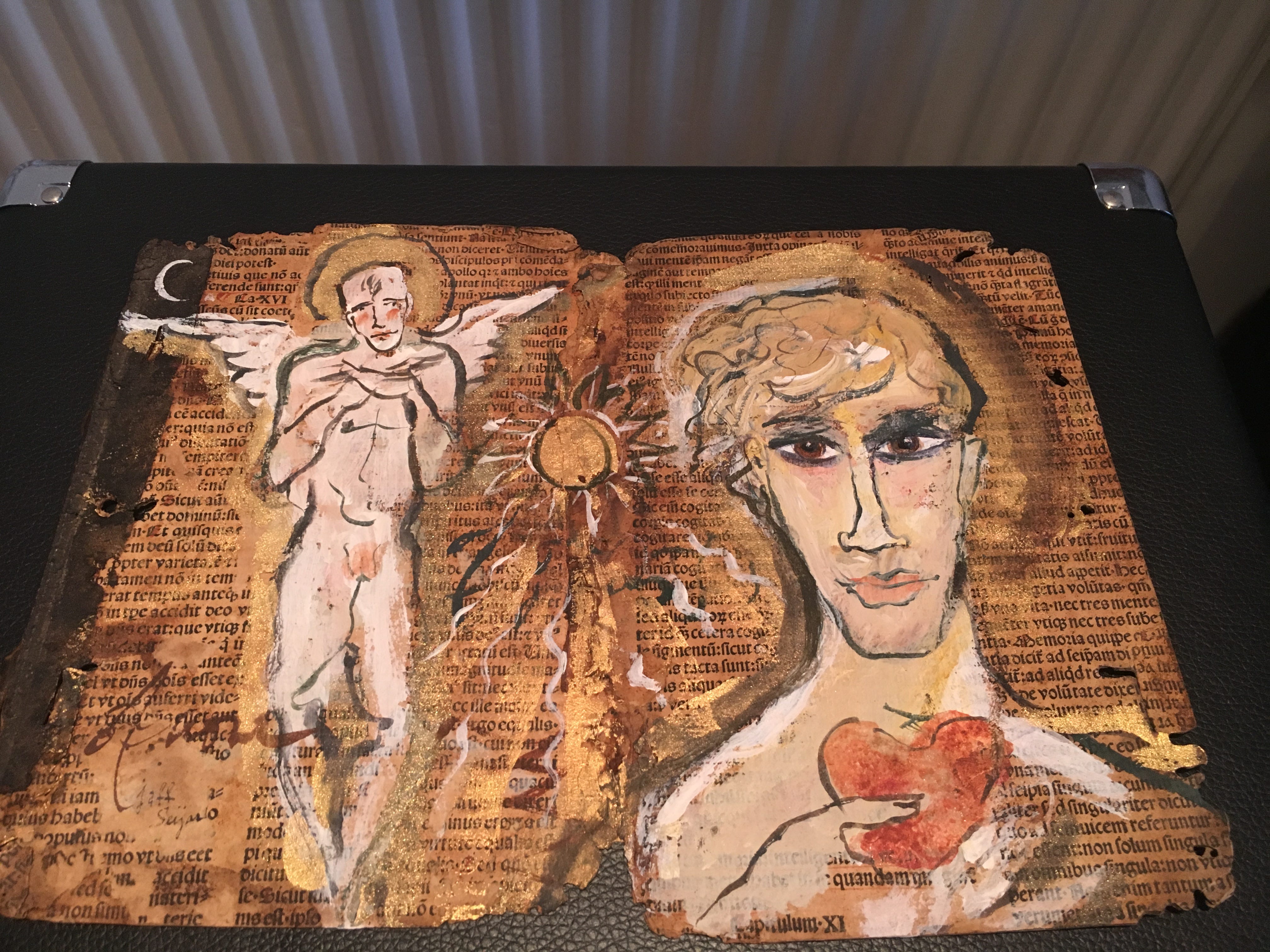 Gouache and inks on a medieval manuscript fragment. This is perhaps the best gift I got in many years. Now to find a fitting mount and frame for it.